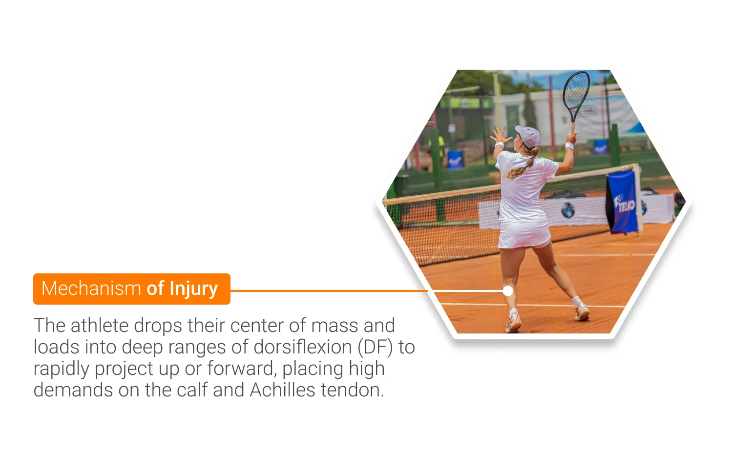 A tennis athlete demonstrating the high demands of the calf and Achilles complex in tennis.
