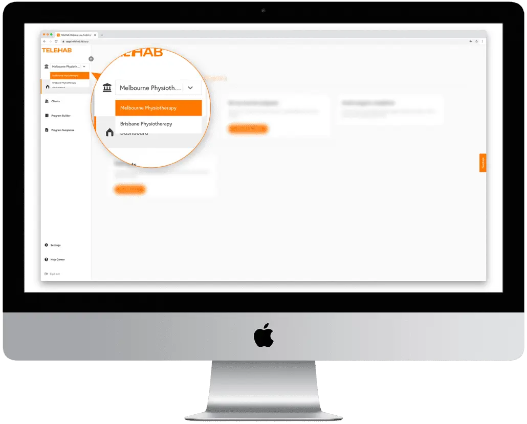 Practitioners can now be assigned to multiple practices under a single TeleHab account. The redesigned side-bar menu allows for a rapid transition between each of these practices – displaying information about clients and exercise programs unique to each.