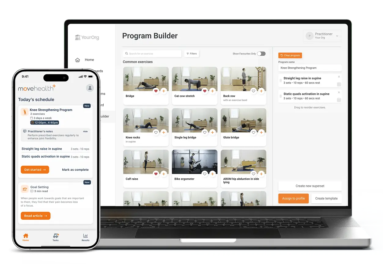 Empower your clients in their own recovery by sending individualized exercise programs and education straight to their phones.